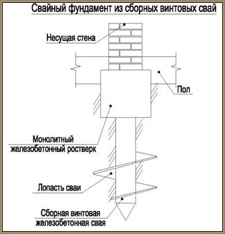 Поверху сваи, по выровненным оголовкам (верхней части свай) соединяют в единое целое с помощью железобетонных монолитных или сборных ростверков. Ширина ростверка равняется толщине стен (но не менее 300 мм), высотой не менее 150 мм.