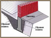 - Чтобы предохранить фундамент от воздействия поверхностных и дождевых вод нужно обязательно сделать отмостку. Обычно ее делают из бетона, асфальта или хорошо утрамбованной глины с наклоном от стены цоколя. На долговечность фундамента также влияет правильно организованный водослив, так как дождевая вода, попадая с крыши на отмостку, разрушает ее и цоколь.