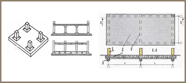 Фундаменты могут быть из отдельных свай, группы свай. Сверху сваи объединяют бетонной (железобетонной) плитой или балкой (ростверком).