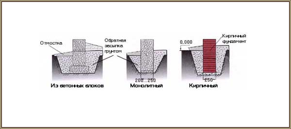 Бутобетонные и железобетонные фундаменты наиболее подходят для зданий с массивными несущими стенами из глиняного кирпича, многослойных стен, бетона.