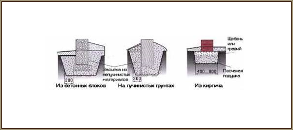 - сборные из бетонных блоков, кирпича, природного камня, дерева твердых пород.