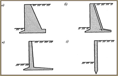 Рассмотрим конструкции подпорных стенок. В зависимости от исполнения они делятся на следующие виды.