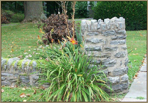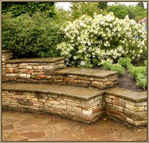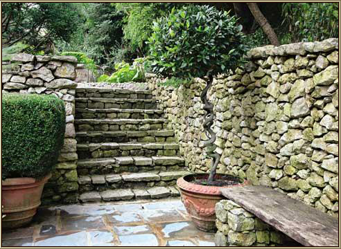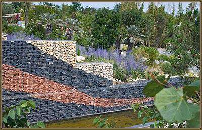 При сухой кладке подпорных стенок или при устройстве габионов в пустоты можно высаживать растения, что придаст участку эстетическое восприятие.