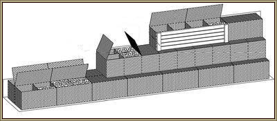- камень, например плитняк, с максимальной плотностью укладывается по лицевой стороне контейнера. Остальное пространство может быть заполнено различными крупнообломочными породами;