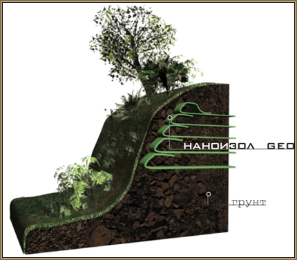 - крепление георешетки к грунту металлическими или пластиковыми анкерами, для предотвращения продольного и поперечного сдвига;