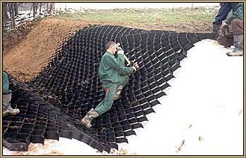 Монтаж георешоток не требует высокой квалификации и выполняется без привлечения сложных механизмов, в основном вручную.