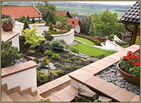 При проектировании коттеджного участка основным вопросом является рельеф территории. Если коттеджные участки расположены на косогорах, склонах оврагов, на берегах рек и при этом имеется значительный перепад высот, необходима их планировка таких участков. При значительном перепаде высот требует устройства горизонтальных поверхностей для размещения на них, как самого коттеджа, так и других зданий, сада и т.д. Выравнивание всей поверхности участка подразумевает большой объем земляных работ, значительное повышение трудоемкости и стоимости строительства. Поэтому, в таких случаях, прибегают к методу террасирования участка, что значительно сокращает объемы работ, позволяет сэкономить финансовые средства, а также подчеркнуть декоративные достоинства коттеджного участка.