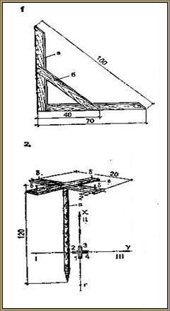 При отсутствии профессионального инструмента для геодезической съемки участка, можно самостоятельно изготовить простейшие приспособления из доступных материалов. На ниже приведенных рисунках хорошо видно их простое устройство.
