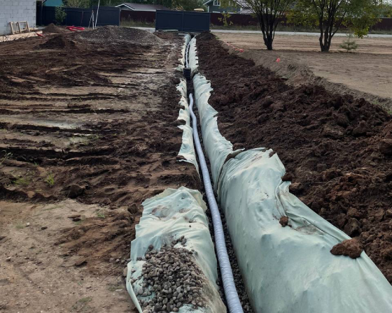 Наша компания предлагает полный цикл работ, связанных с установкой дренажа на участке.
